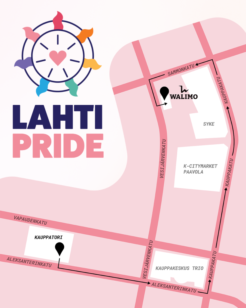Tervetuloa marssille! Perinteinen Lahti Pride -kulkue kulkee tänä vuonna kauppatorilta Walimolle.